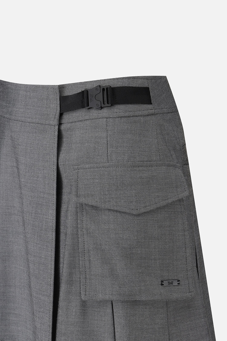 언밸런스한 아웃포켓과 장식 벨트 디테일로 디자인 포인트