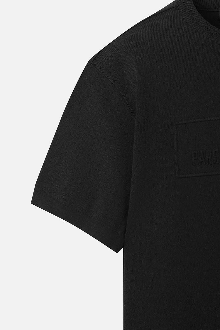 로고 고주파 엠보, 넥 부분 조직 변형을 통한 고급스러움을 강조