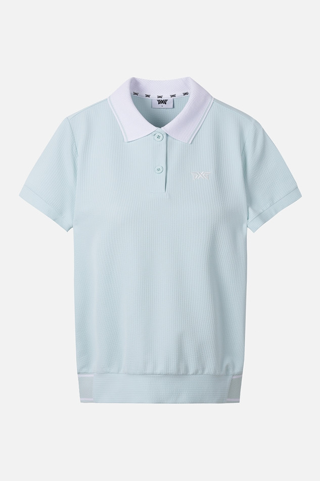 샤 소재의 시스루 리본으로 청량감을 살린 디자인