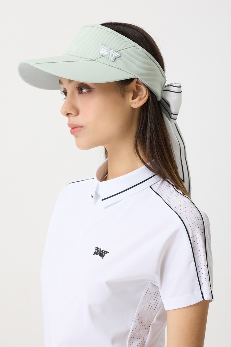 조직감있는 소재와 리본장식으로 여성스러움을 강조한 바이저