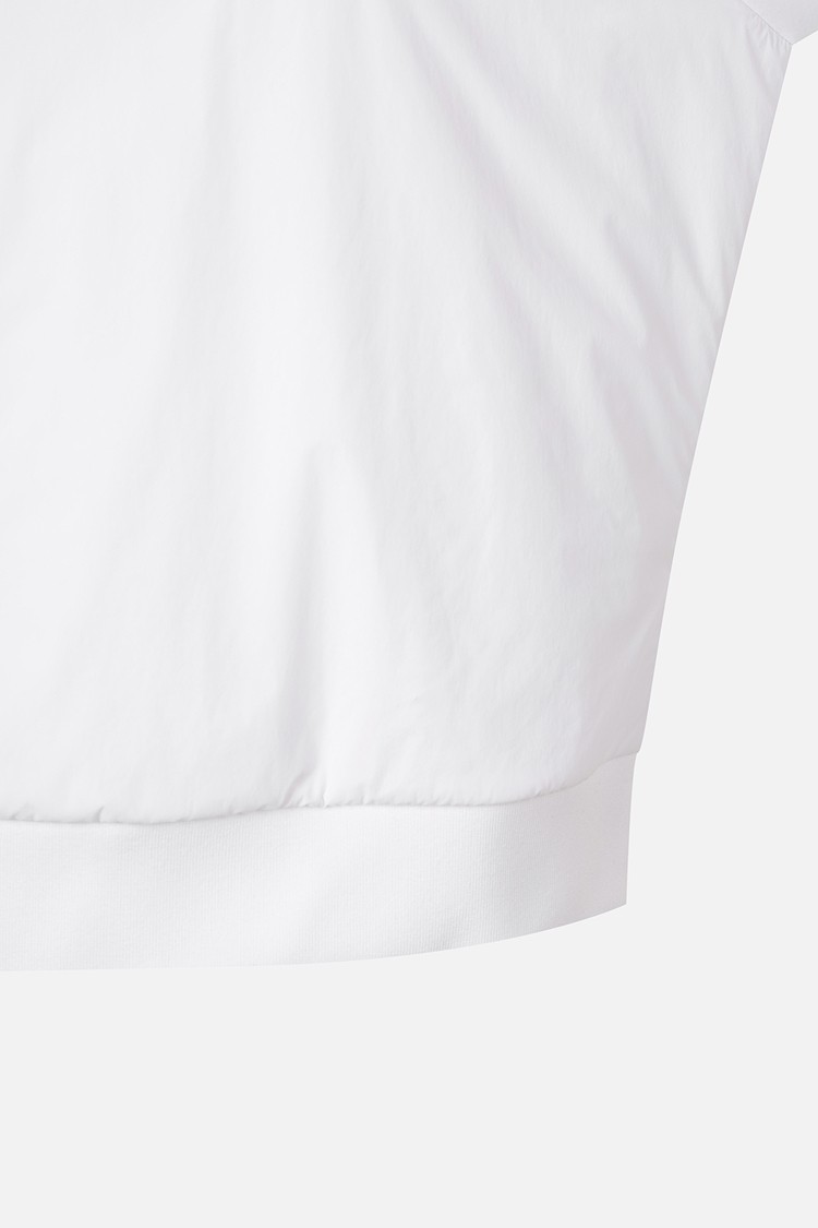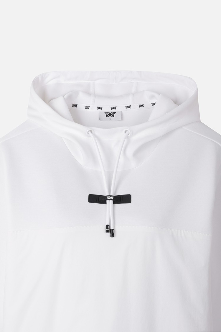 여유있는 실루엣의 우븐 믹스 후드 티셔츠