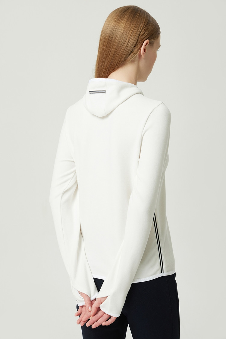 하이넥으로 높게 올라오는 미니 후드 방한 이너