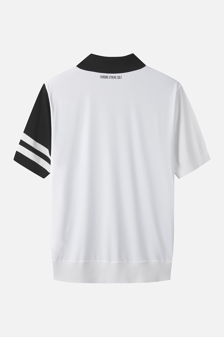 MEN COLOR BLOCKED KNIT HYBRID COLLAR SHORT SLEEVE