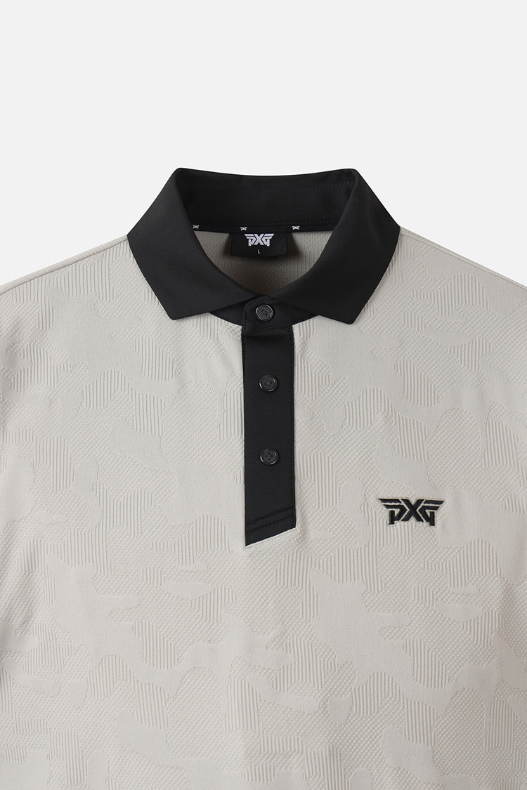 MEN MESH JACQUARD COLLAR SHORT SLEEVE